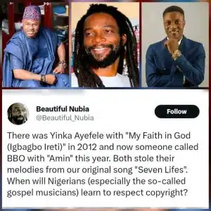 Beautiful Nubia specifically referenced Yinka Ayefele’s 2012 song My Faith in God (Igbagbo Ireti) and BBO’s 2026 track Amin, claiming both songs drew heavily from the core melody of Seven Lifes.