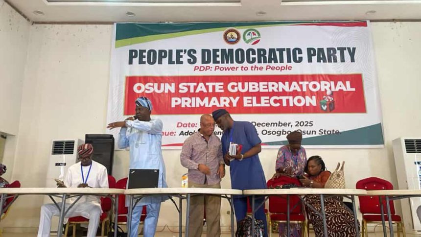In a twist that added drama to the exercise, the name of Governor Ademola Adeleke still appeared on the ballot despite his resignation from the PDP weeks earlier, a move only revealed publicly on Monday night. His inclusion on the ballot reportedly stemmed from the timing of his withdrawal relative to the party’s internal processes.