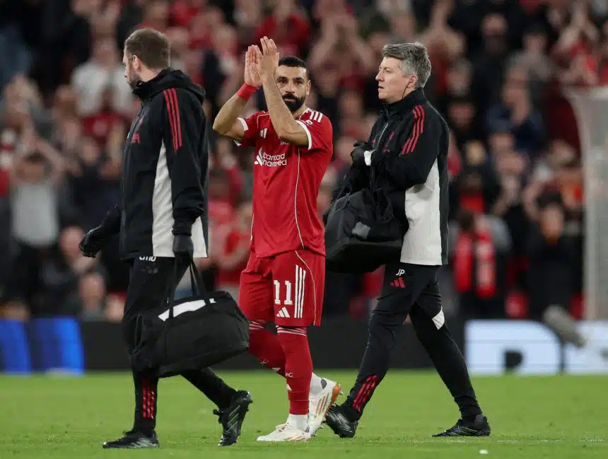 The Egyptian forward was forced off at Anfield on Wednesday after scoring in Liverpool’s 4-0 victory against Galatasaray, which sealed their place in the quarter-finals of this year’s Champions League.