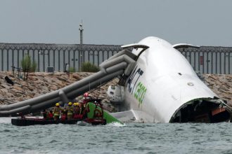Two Killed as Cargo Plane Skids Off Runway into Sea at Hong Kong Airport